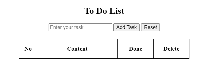 No는 10%, Content는 45%, Done과 Delete는 각 20%
