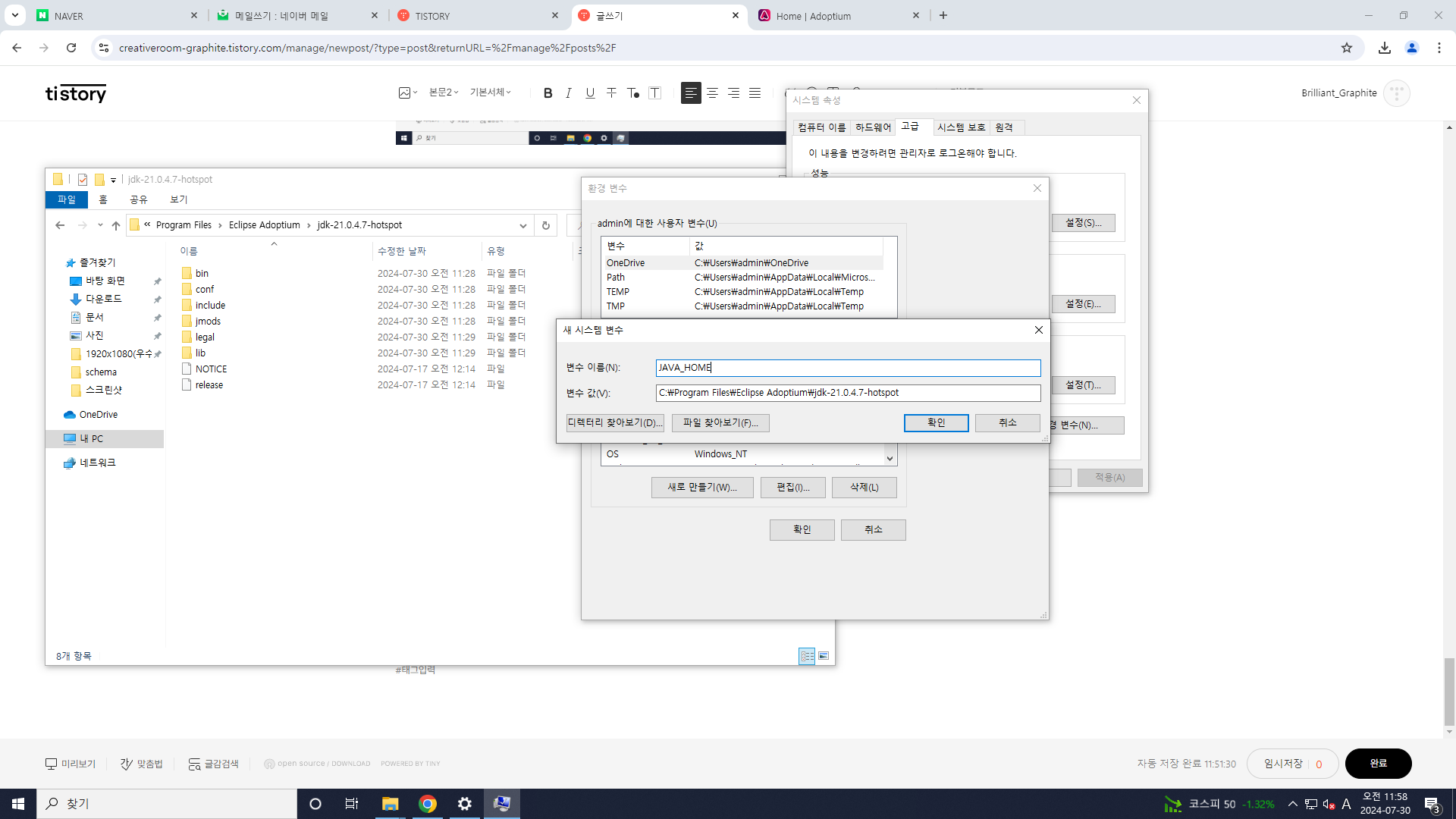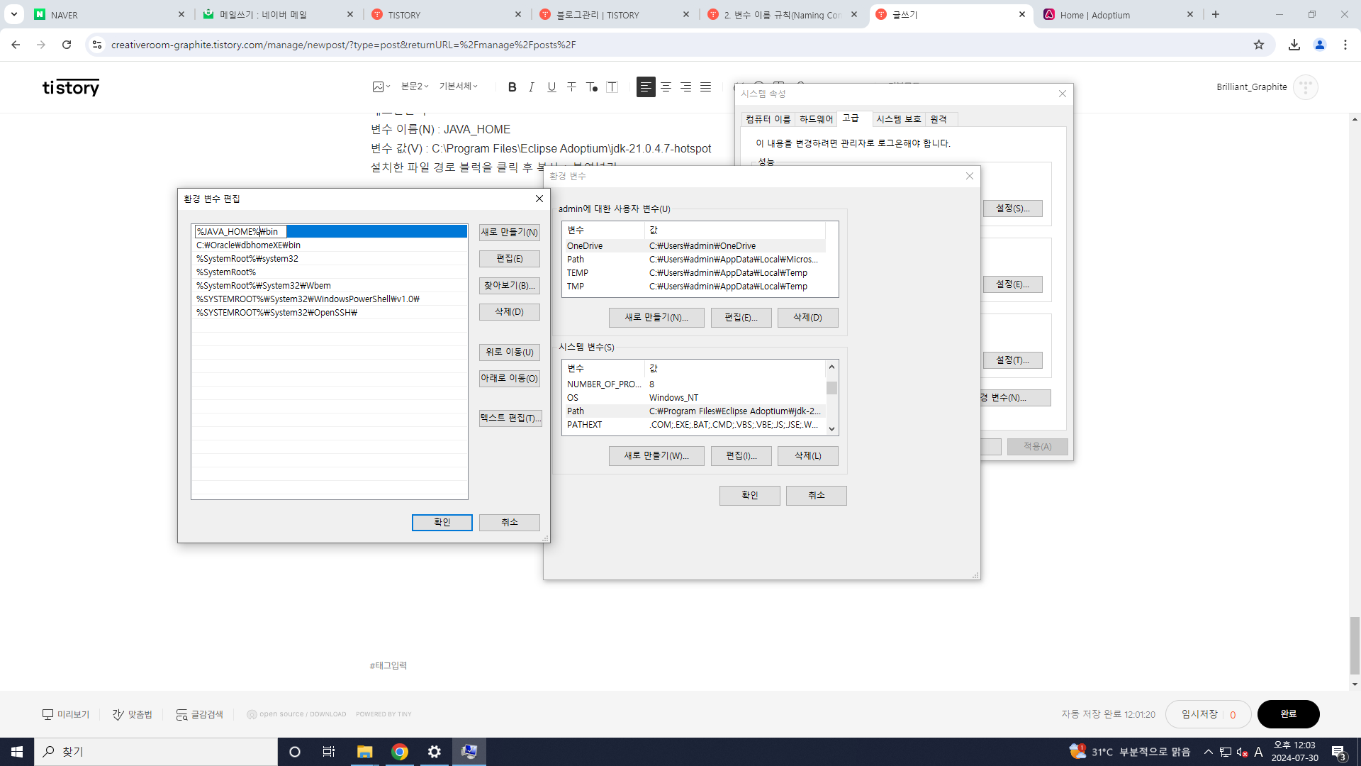 변수 값(V) : C:\Program Files\Eclipse Adoptium\jdk-21.0.4.7-hotspot