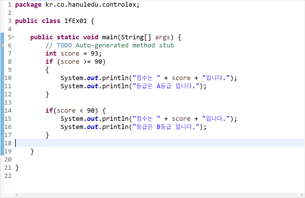 * 다중 if문 : 여러 개의 조건을 판단하여 조건을 만족할 경우 실행