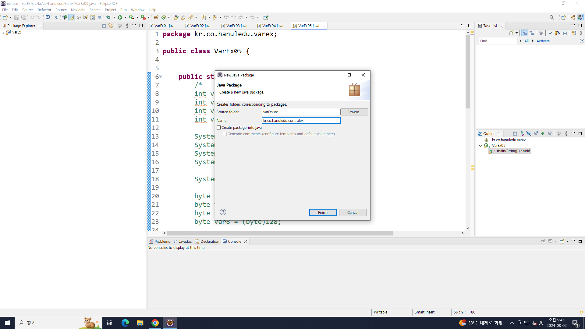 varEx에 오른쪽 버튼 클릭 > Refactor < Rename